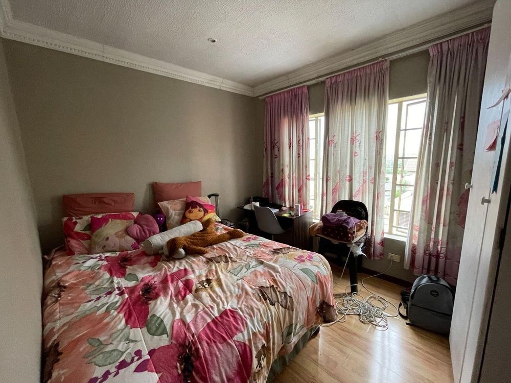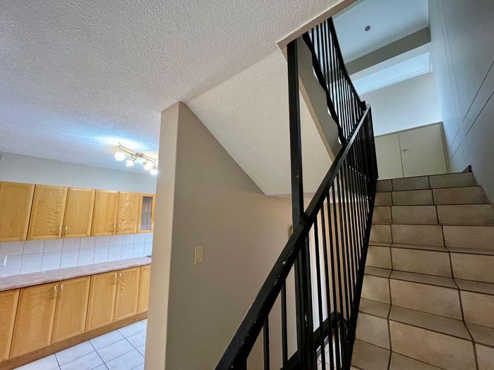 All three bedrooms are upstairs and fitted with built-in cupboards. The main bedroom has an en-suite bathroom with a shower, basin and toilet. The other two bedrooms share a bathroom with a bath, basin and toilet. A guest toilet is located downstairs.