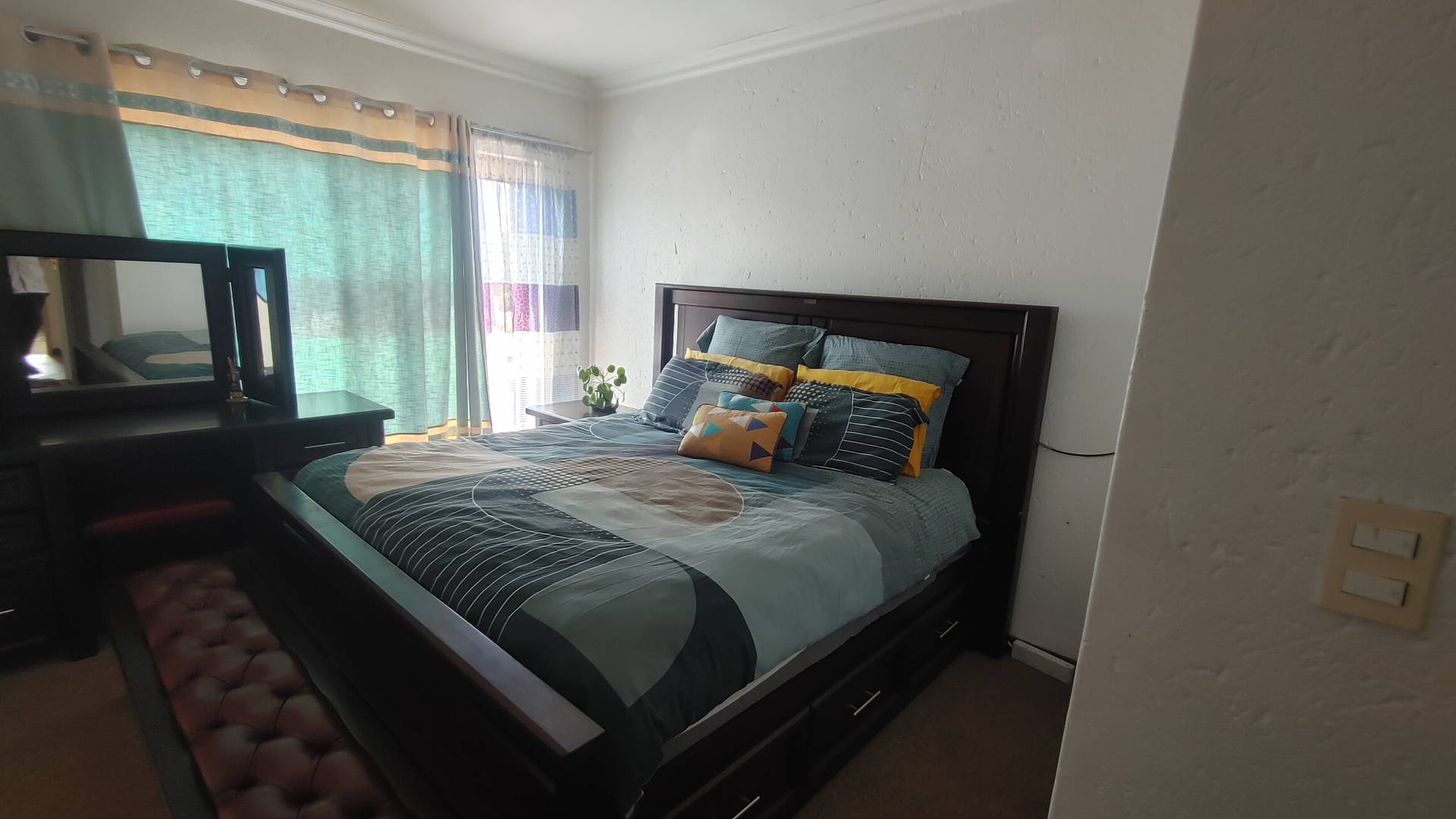 - the main bedroom offers space for a queen-sized bed and a dressing table