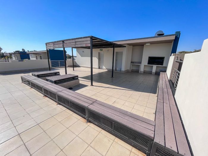 Effortless urban living near the university and Gautrain, ideal for investors or first-time buyers; modern kitchen, rooftop terrace with views and braai, one-bedroom, one-bath, covered parking.