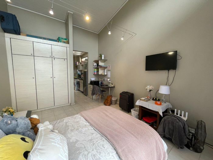Live opposite the University of Pretoria in vibrant Hatfield — neat one-bedroom with built-ins, secure undercover parking, 24-hour security, fiber, and a braai beneath wild plum trees.