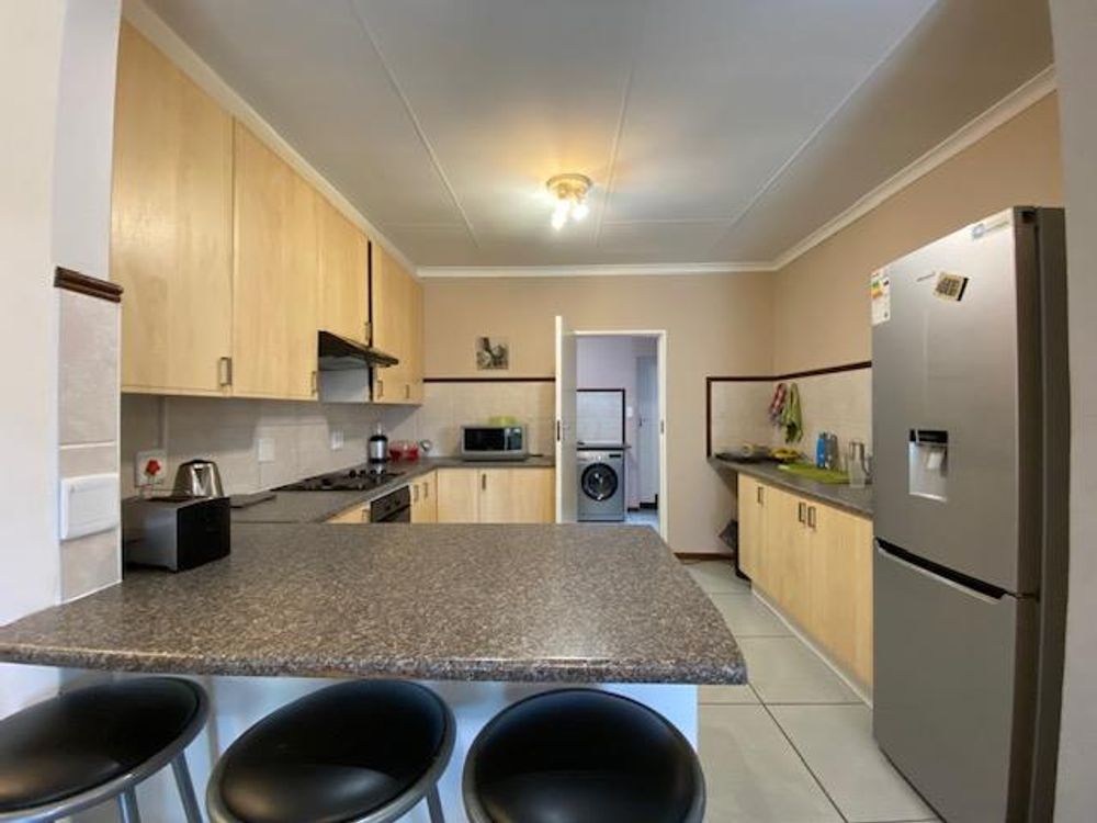 Discover the perfect blend of comfort and style in this three-bedroom townhouse available for rent. With two full bathrooms, a spacious lounge, dining room, and a modern kitchen featuring granite tops, this property offers contemporary living at its finest. The convenience of a scullery/laundry room and a double garage, providing direct access to the house, adds to the appeal.