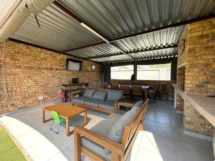 Year-round entertaining in an enclosed patio with canvas walls and private garden, within a secure Die Wilgers complex near The Grove Mall and Lynnwood Road. 3 beds, 2 baths.