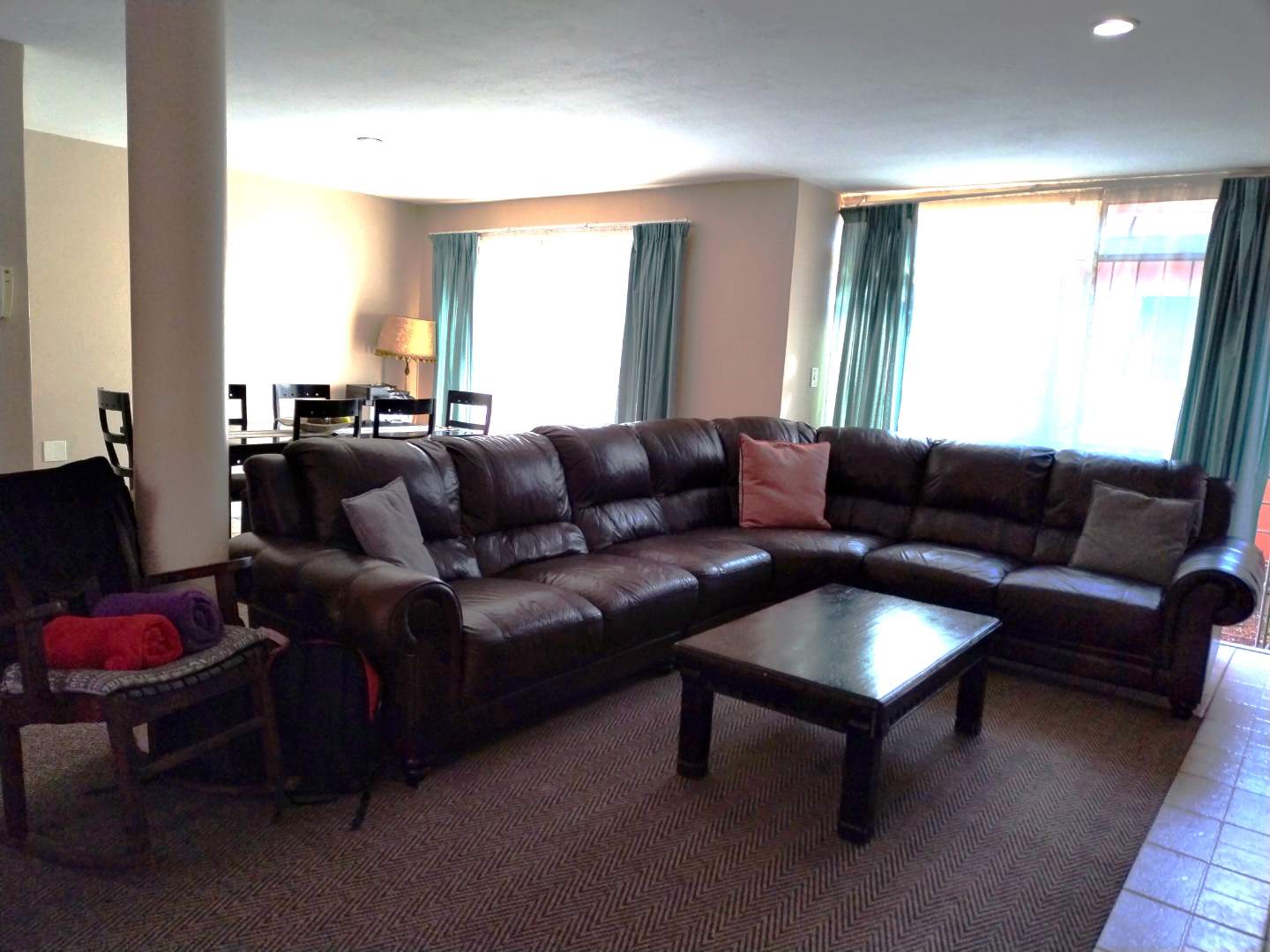 This house offers you a generously sized kitchen, equipped with ample cabinetry and counter tops, space for 2 washing appliances and a double door fridge.